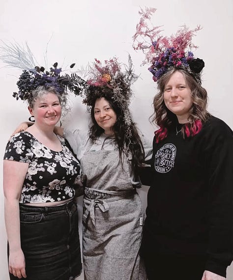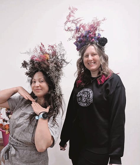 Snaps from Sarah’s Halloween dried floral headdress workshop