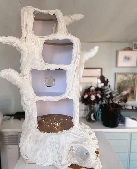 Picture below of the beginning of Keeley’s Brambly Hedge treehouse.
